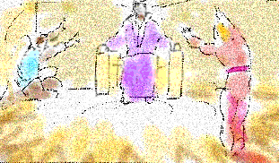 He lived in heaven, where everything is perfect--I mean really perfect--!! (this is a really bad artists rendition of heaven) He had billions and zillions of angels and cherubim and seraphim and unbelievably awesome creatures whose only purpose is to worship Him and praise Him (and He deserves our praise) By the way--an angel as described in the Bible isn't like a little girl with wings--no way--an angel is an awesome creature--!